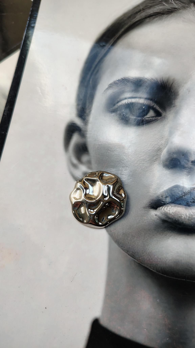 Orecchini in acciaio inossidabile e ipoallergenico con effetto martellato, chiusura con perno.