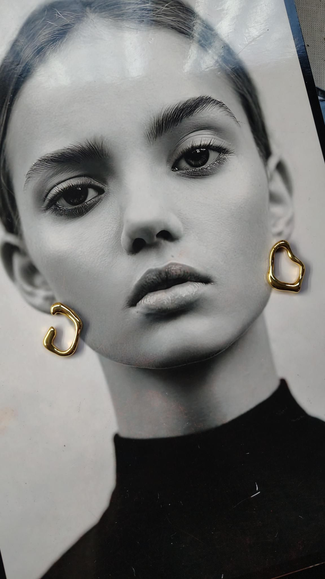 Orecchini in acciaio inossidabile e ipoallergenico con forma fantasy e chiusura con perno.