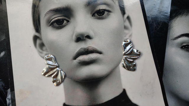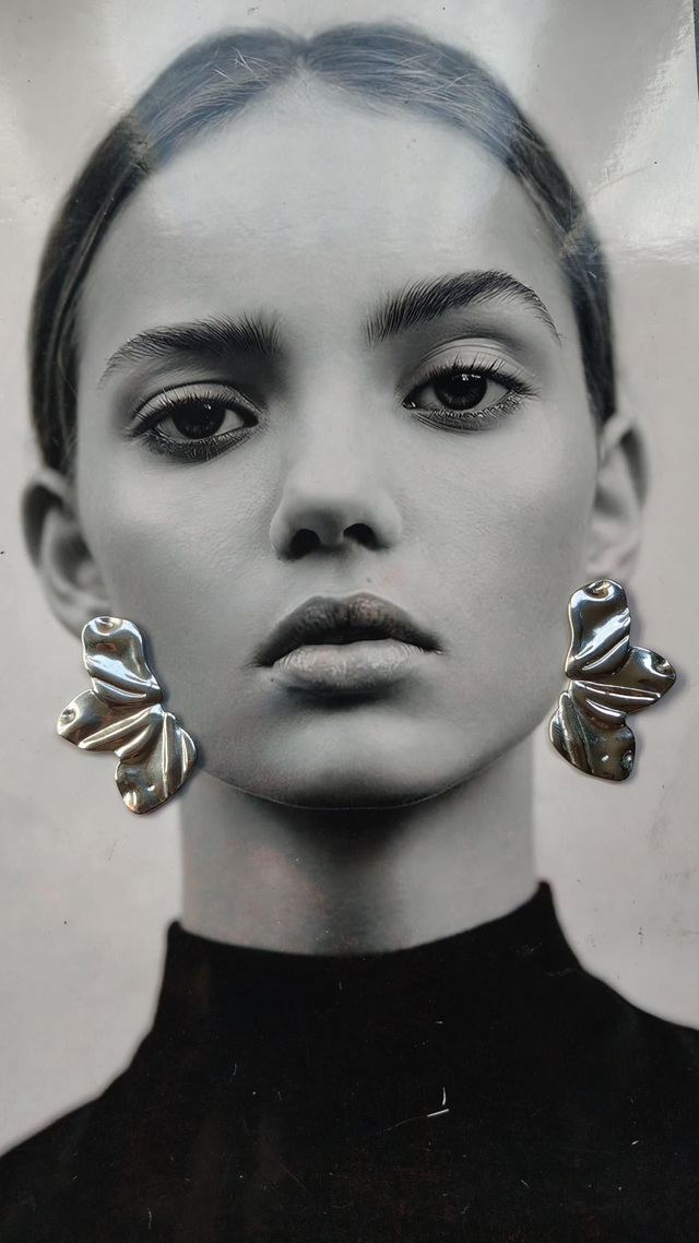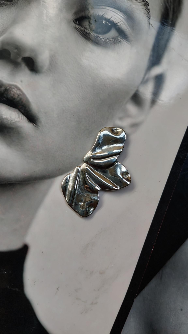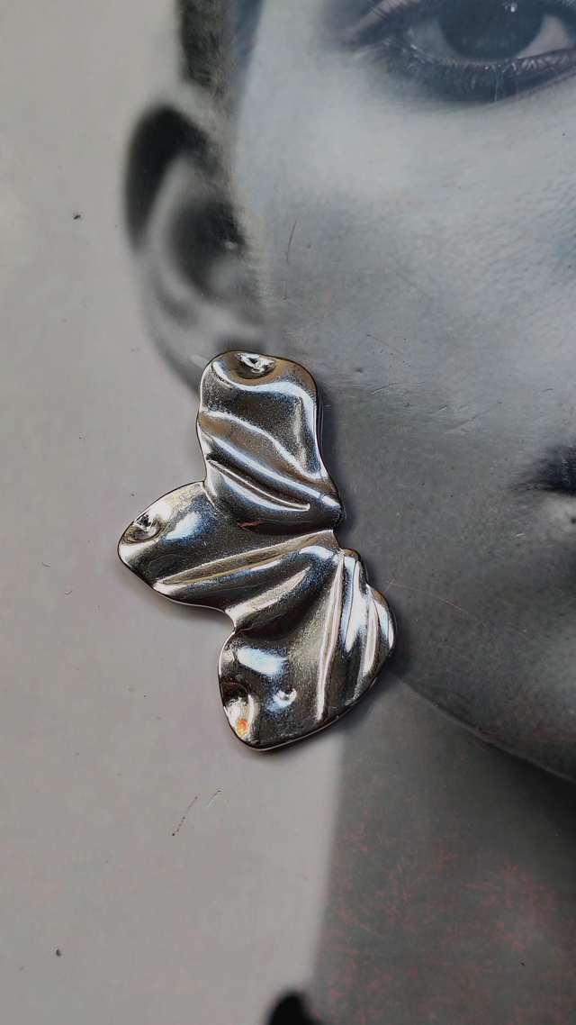 Orecchini in acciaio inossidabile e ipoallergenico a forma di ventaglio con effetto martellato.