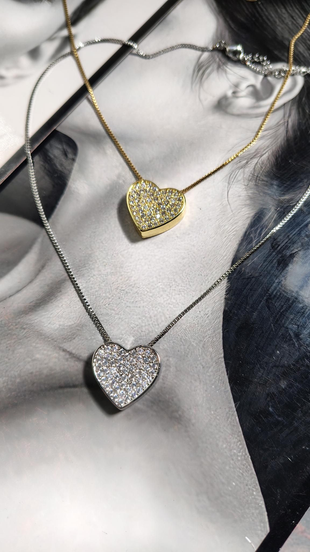 Collana in acciaio inossidabile e ipoallergenico con cuore di strass, lunghezza regolabile 40-45cm.