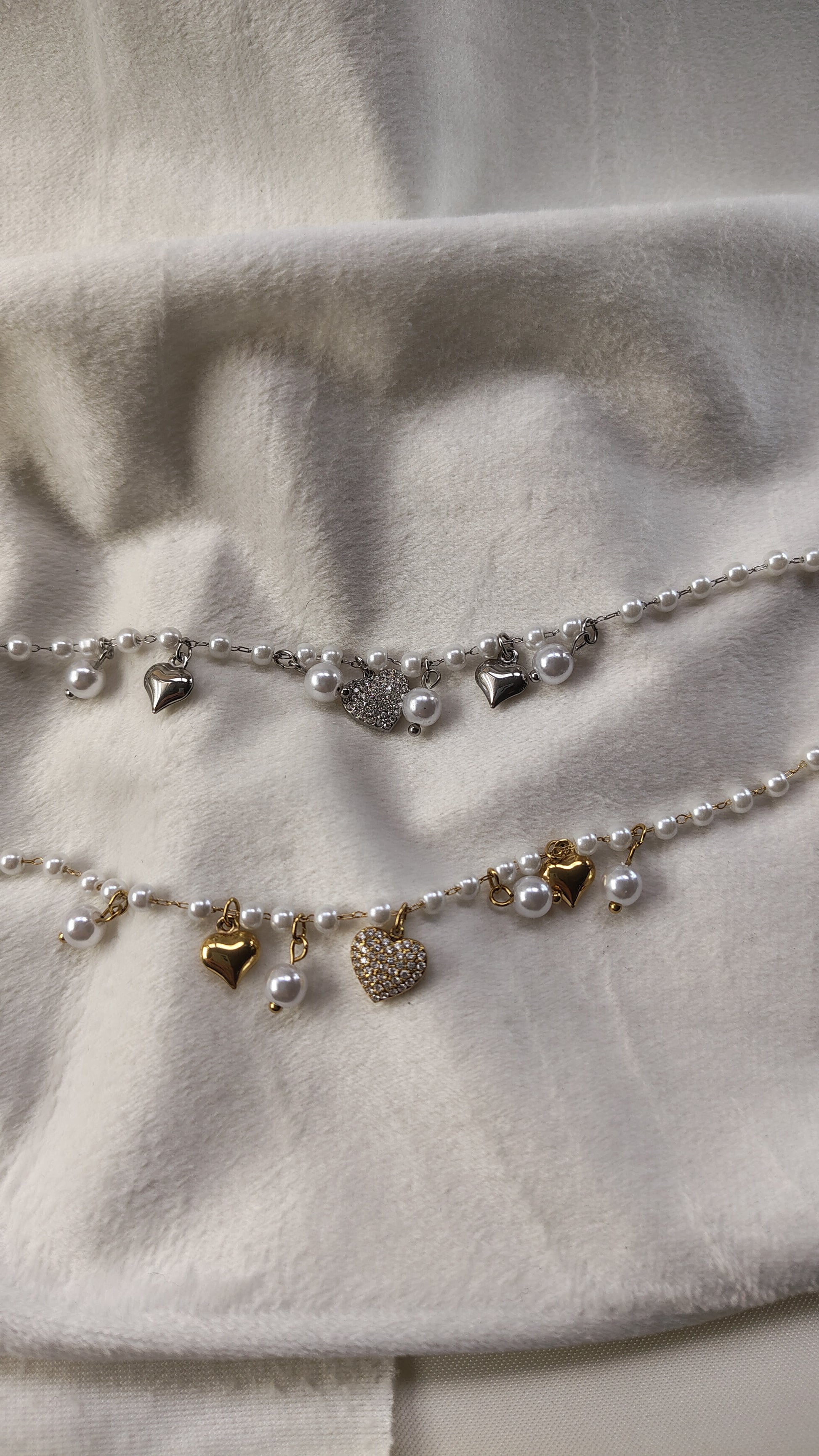 Dettagli: perle bianche e cuori decorativi