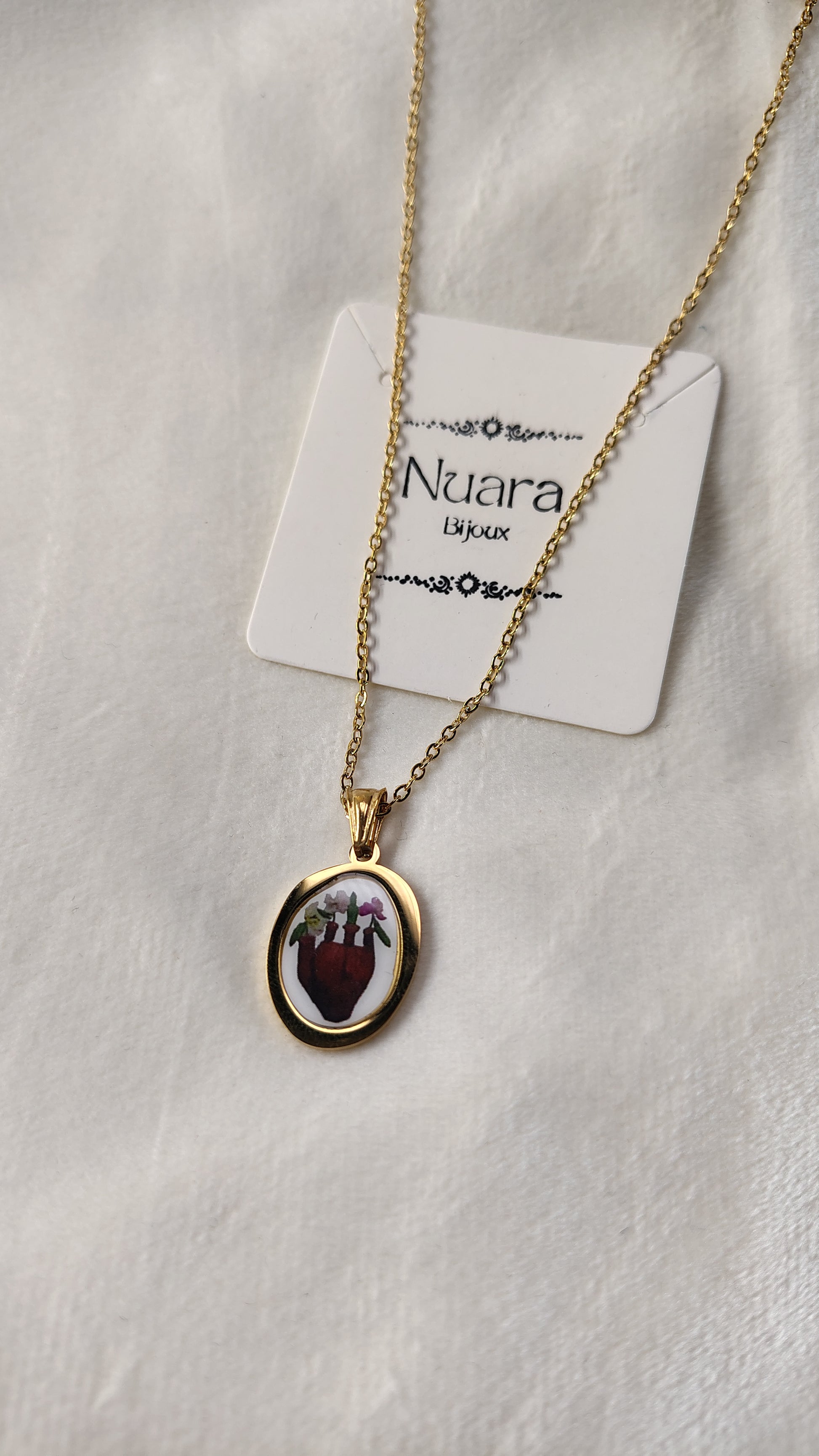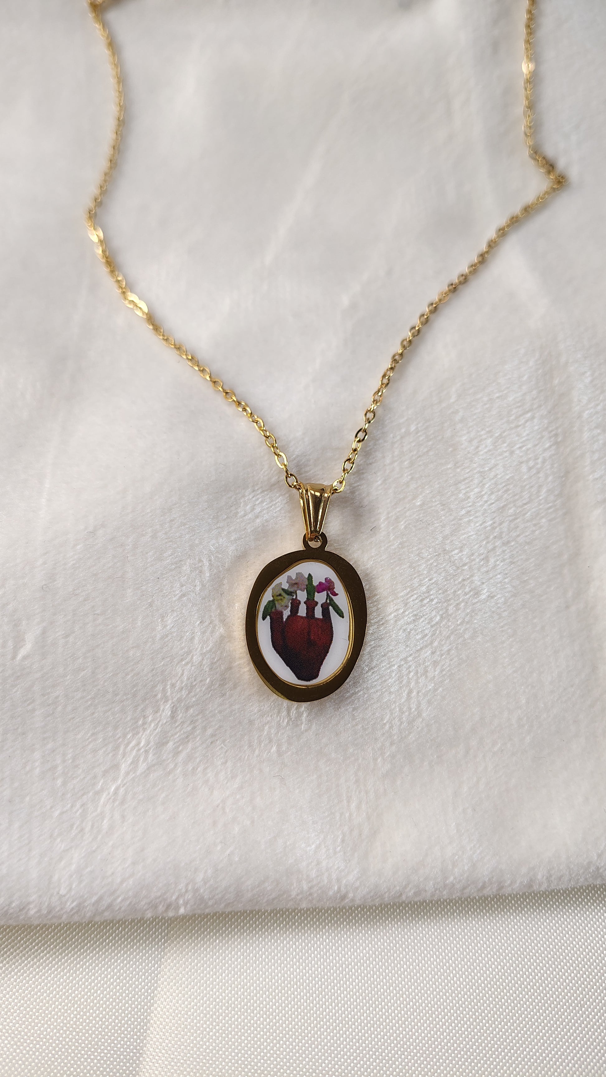 Collana con cuore anatomico fiorito