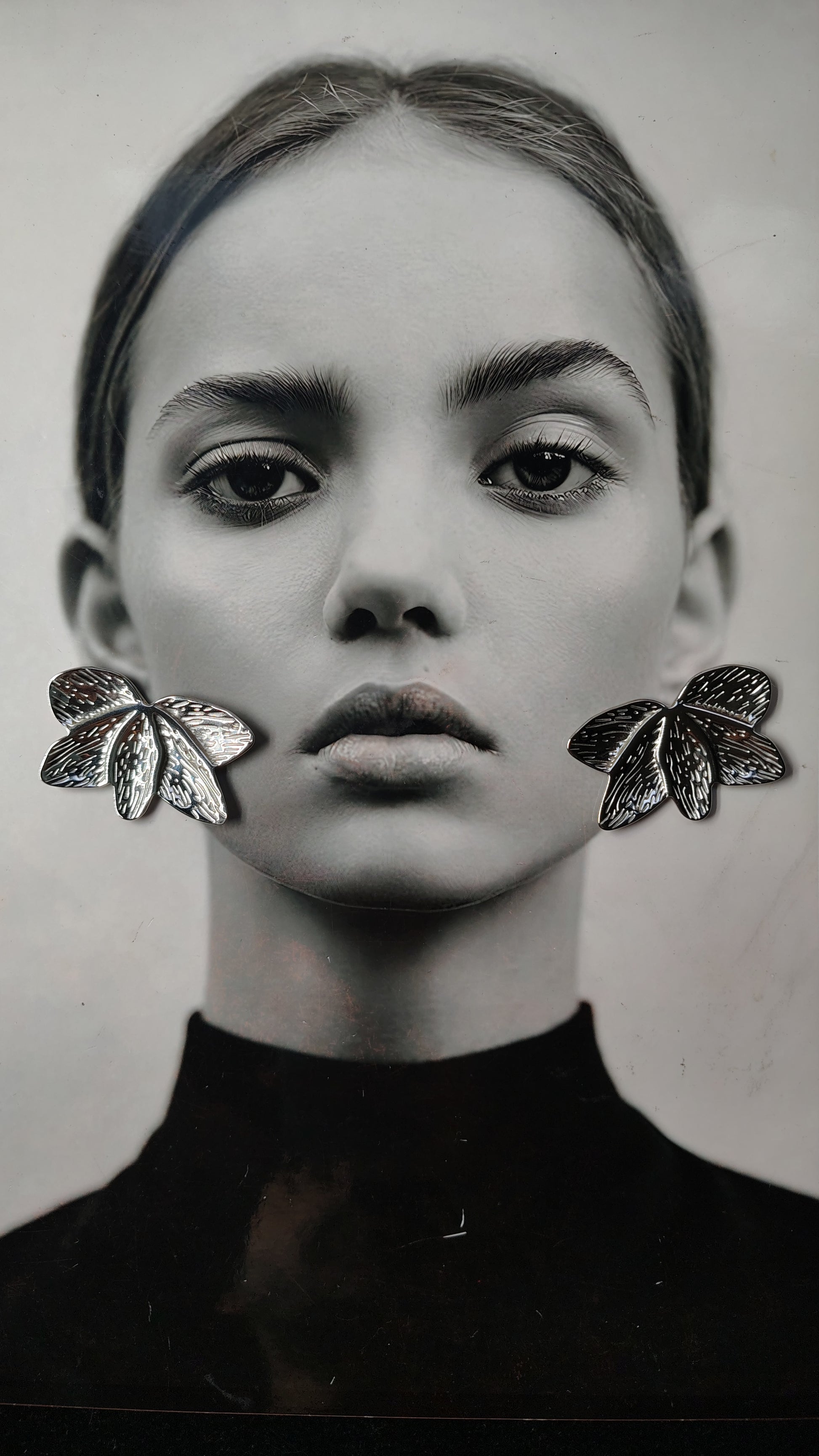 Un piccolo fiore metallico che illumina il volto con semplicità e carattere.