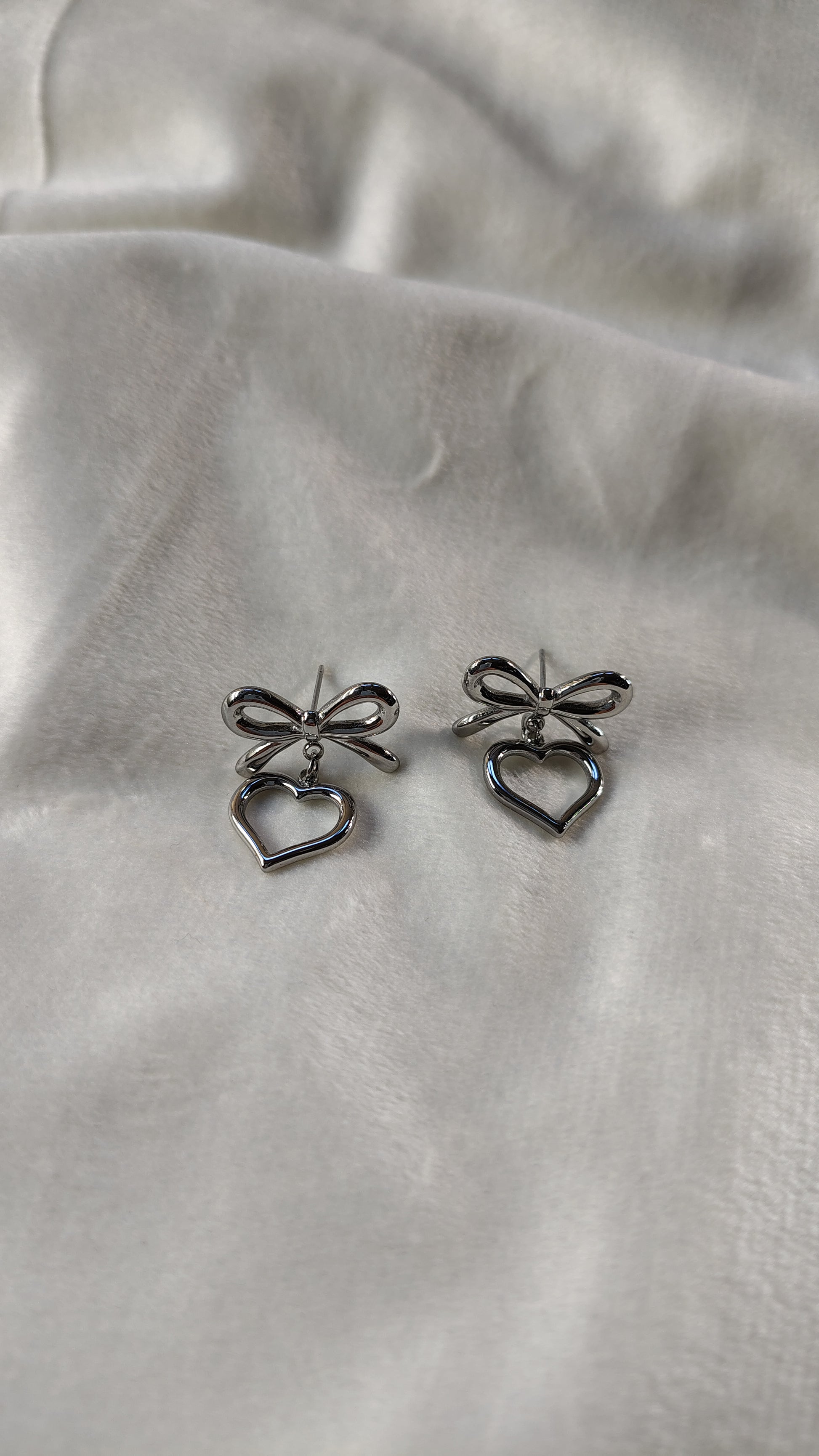 Orecchini Pendenti Fiocco con Cuore in Acciaio Inossidabile | Nuara Bijoux